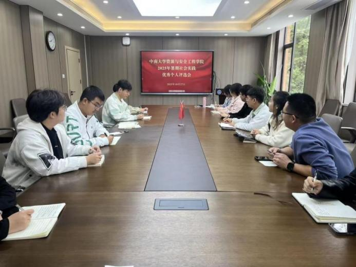 10月27日,暑期社会实践优秀个人评选会在采矿楼222会议室举行。由院团委书记丁德孝、副书记王子涵及8名学生团委委员组成评审团,依据实践时长、服务成效、社会反响、成果产出等维度,对24名入围候选人进行综合评审。经现场无记名投票,最终评选出12名社会实践优秀个人。