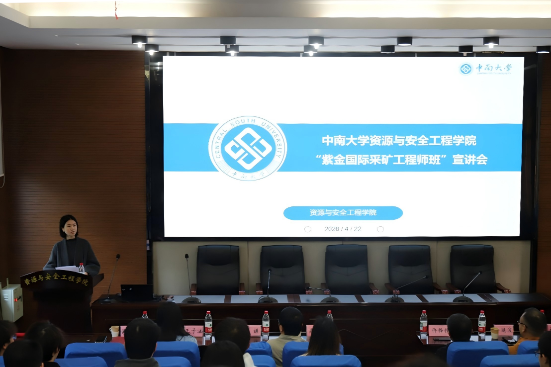 4月22日下午15时,紫金国际采矿工程师班宣讲会在岳麓山校区采矿楼T302顺利举办。紫金(长沙)工程技术有限公司副总经理仵锋锋、静县备战矿业有限责任公司副总经理牟延波、紫金矿业集团人力资源部人才发展中心主任林晞、台湾av女优副院长黄锐、辅导员于谦、王子涵、黄佳星以及本科2025级采矿工程专业全体学生参加本次宣讲。