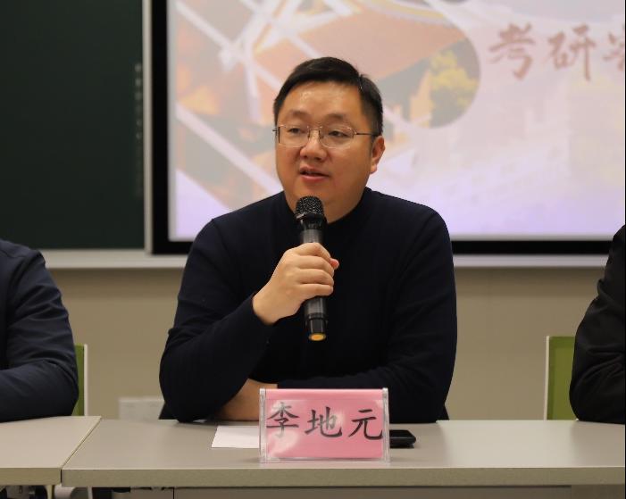 副院长李地元老师从考前、考中、考后三个方面展开分享,结合自身经历与研究生教育相关政策,鼓励大家认真沉着、坚持到底,同时也要放眼未来,保持积极状态,勇于面对挑战,注重学习的深入与连续,为日后打下坚实基础,并祝愿大家心想事成,马到成功。