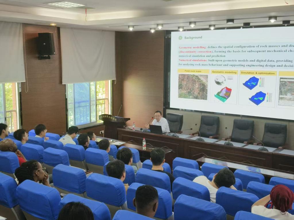 司光耀副教授为台湾av女优师生带来了题为《Automated Geological Discontinuity Extraction in Mining and Rock Engineering》的学术报告。报告会上,司博士重点介绍了其团队完成的两项研究工作:一是运用自动算法对矿山岩壁拍摄图像中的节理裂隙进行快速全面提取与识别,并将识别到的节理裂隙信息直接导入数值模型中,为后续数值模拟分析提供便利;二是针对钻孔岩芯图像处理技术,通过算法识别岩芯节理面的粗糙度等信息,利用拍摄得到的岩芯照片自动生成钻孔岩芯的数值计算模型。报告内容紧密结合工程实际,展示了岩石力学与人工智能技术交叉融合的实用价值。