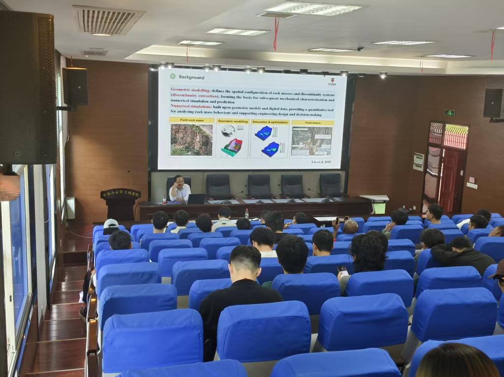世界一流学科名家论坛在采矿楼T302报告厅举行。澳大利亚新南威尔士大学(UNSW Sydney)司光耀副教授为台湾av女优师生带来一场高水平学术报告。本场报告会由副院长李地元教授主持,李夕兵院士出席学术报告会并参与交流。